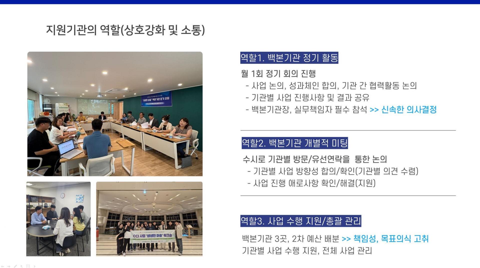 - 백본기관 협력 중심의 지속 가능한 지역문제 해결 구조 마련